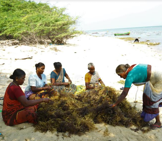 We cultivate and collect the red and brown marine algae from the coastal areas of Southern India with the help of our cultivators (Fisherman community) which mainly comprises women. We support ethical labour practices and gender equality by providing flexibility to our cultivators and supporting them financially while ensuring a beneficial impact on the environment by being carbon positive.